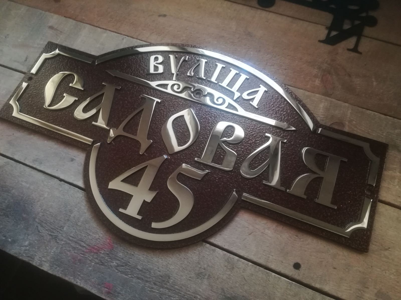Адресная табличка литая выполнена из нержавеющей стали и покрыта полимерным покрытием. Это долговечное, стильное и солидное изделие украсит фасад любого здания.